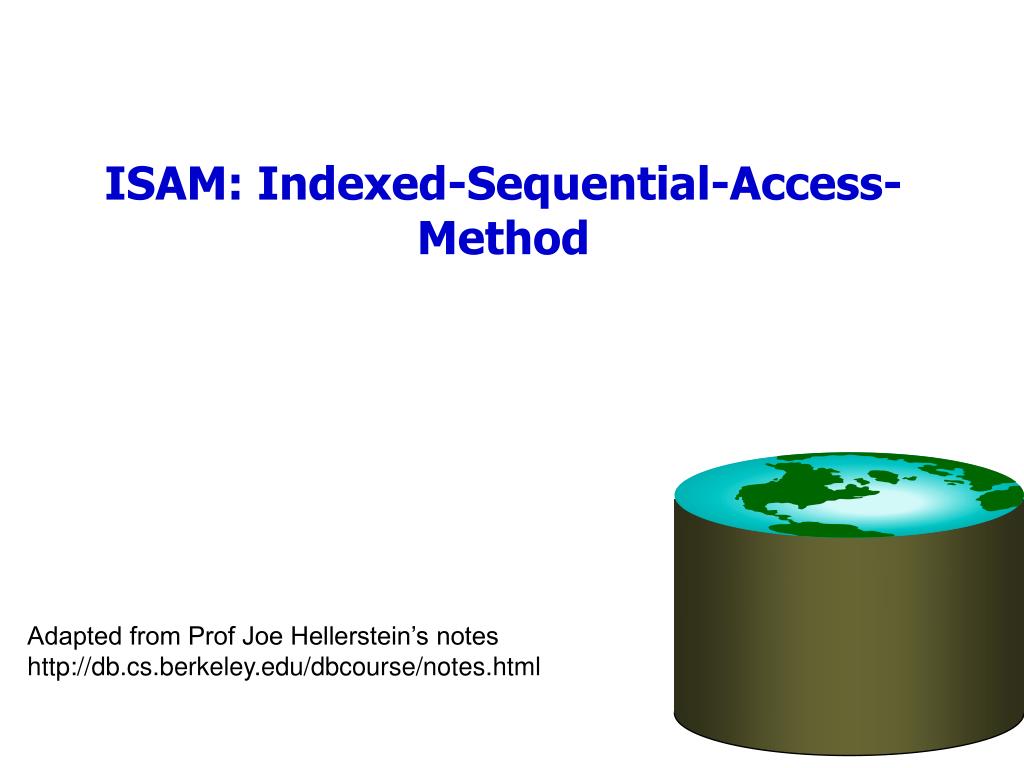 ISAM: Indexed-Sequential-Access-Method. Adapted from Prof Joe Hellerstein’s notes http://db.cs.berkeley.edu/dbcourse/notes.html. A Note of Caution. ISAM is an old-fashioned idea B+-trees are usually better, as we’ll see Though not always But, it’s a good place to start