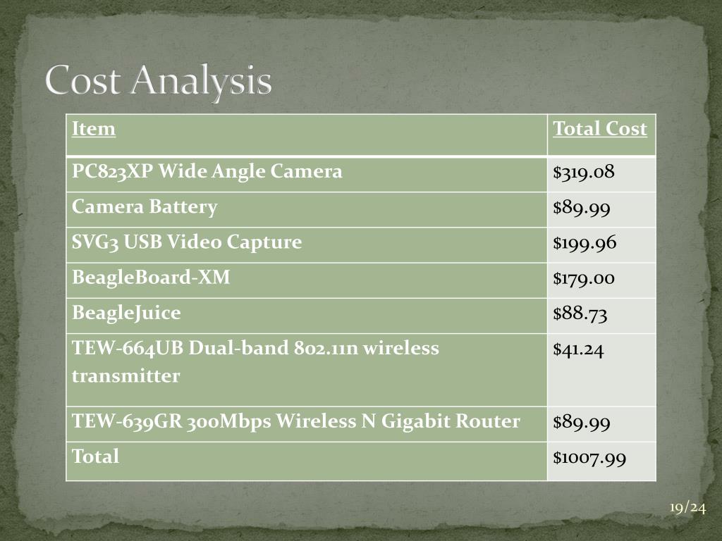 Market Survey • There does not exist a solution which satisfies all of the following requirements: • Simultaneous 360o video capture • Wireless transmission • Real-time video feeds • Inconspicuous design • Portable design http://www.0-360.com/ http://www.immersivemedia.com/products/capture.html