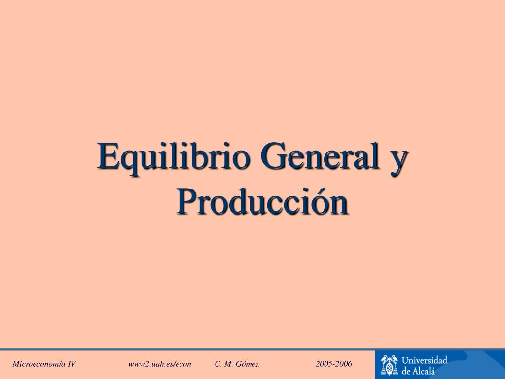 Equilibrio General y Producción. En esta unidad. Generalizamos los resultados obtenidos en el apartado anterior a una economía en la que cada individuo posee una cierta capacidad de producir distintos bienes utilizando un único factor de producción (el trabajo).