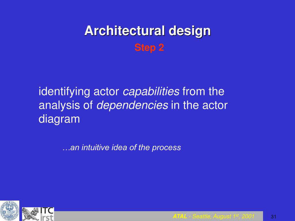 Architectural designStep 2 • identifying actor capabilities from the analysis of dependencies in the actor diagram • …an intuitive idea of the process