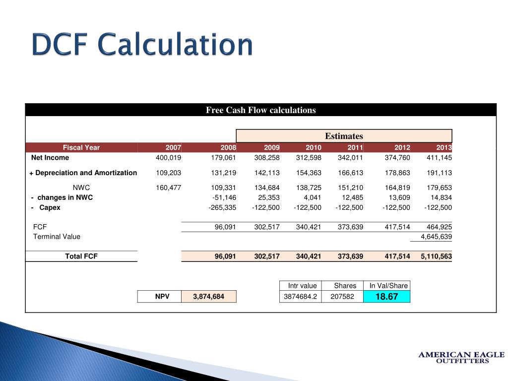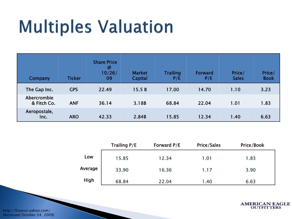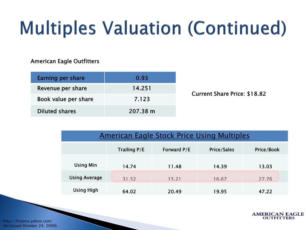 Multiples Valuation (Continued) Current Share Price: $18.82 American Eagle Outfitters http://finance.yahoo.com/ (Accessed October 24, 2009)