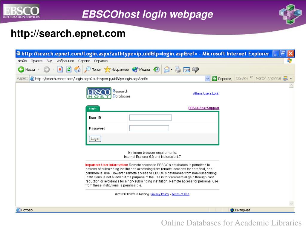 EBSCOhost login webpage http://search.epnet.com