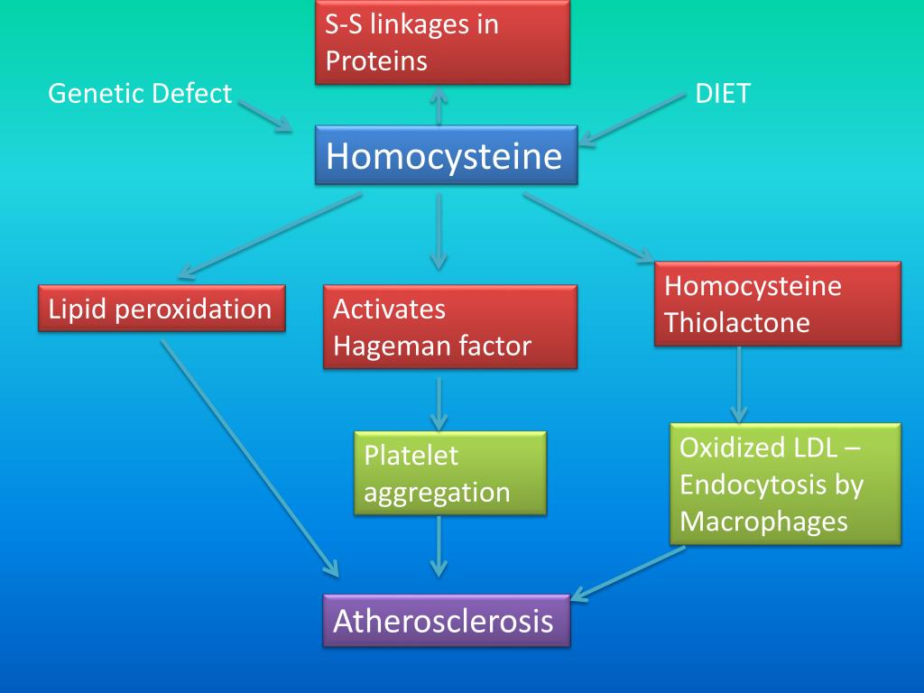 S-S linkages in Proteins Genetic Defect DIET Homocysteine Homocysteine Thiolactone Lipid peroxidation Activates Hageman factor Oxidized LDL – Endocytosis by Macrophages Platelet aggregation Atherosclerosis
