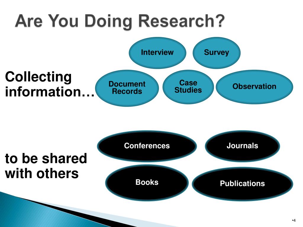 Collecting information… to be shared with others Journals Conferences Interview Survey Document Records Books Case Studies Observation Publications