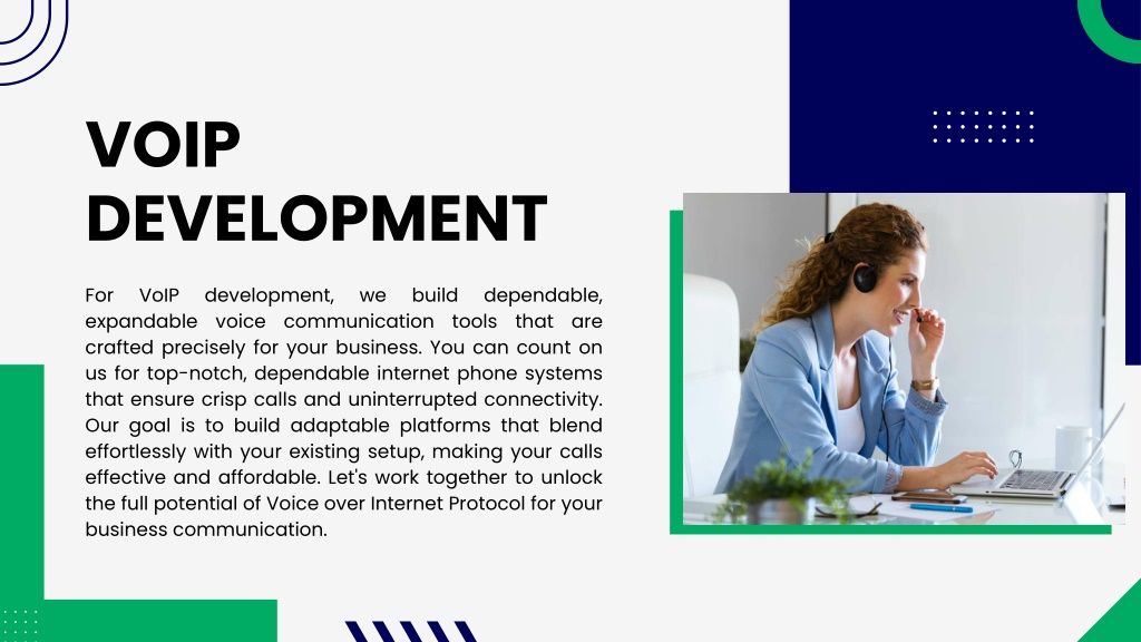 VOIP DEVELOPMENT For expandable voice communication tools that are crafted precisely for your business. You can count on us for top-notch, dependable internet phone systems that ensure crisp calls and uninterrupted connectivity. Our goal is to build adaptable platforms that blend effortlessly with your existing setup, making your calls effective and affordable. Let's work together to unlock the full potential of Voice over Internet Protocol for your business communication. VoIP development, we build dependable,