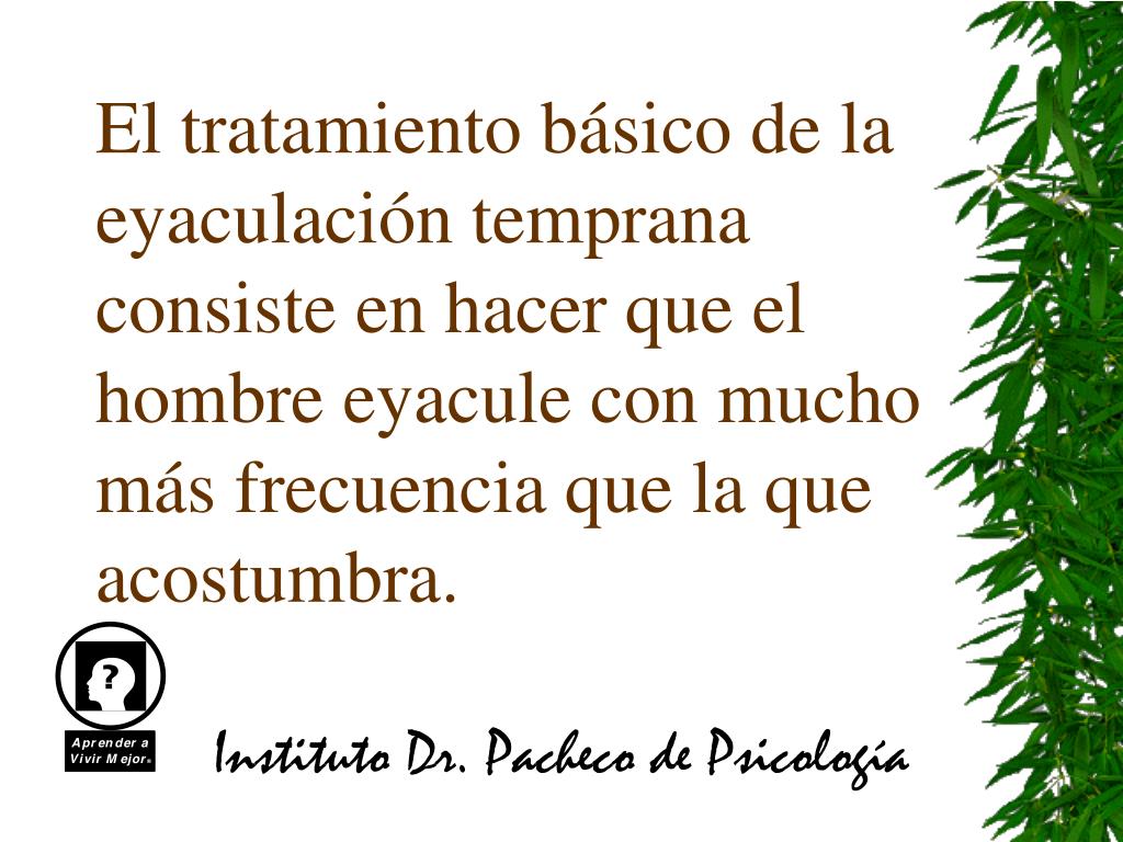 El tratamiento básico de la eyaculación temprana consiste en hacer que el hombre eyacule con mucho más frecuencia que la que acostumbra. Instituto Dr. Pacheco de Psicología