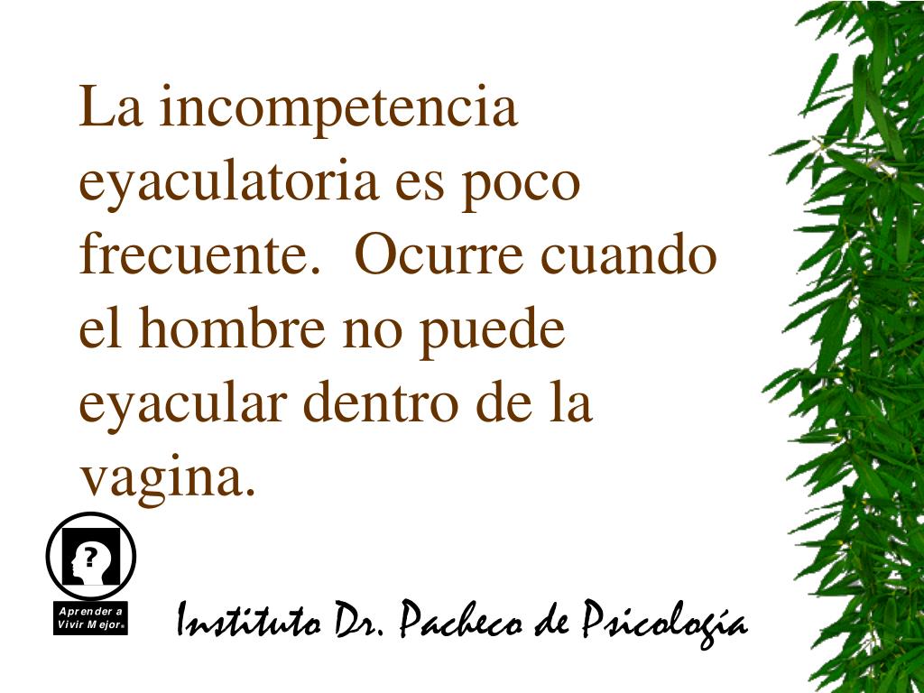 La incompetencia eyaculatoria es poco frecuente. Ocurre cuando el hombre no puede eyacular dentro de la vagina. Instituto Dr. Pacheco de Psicología