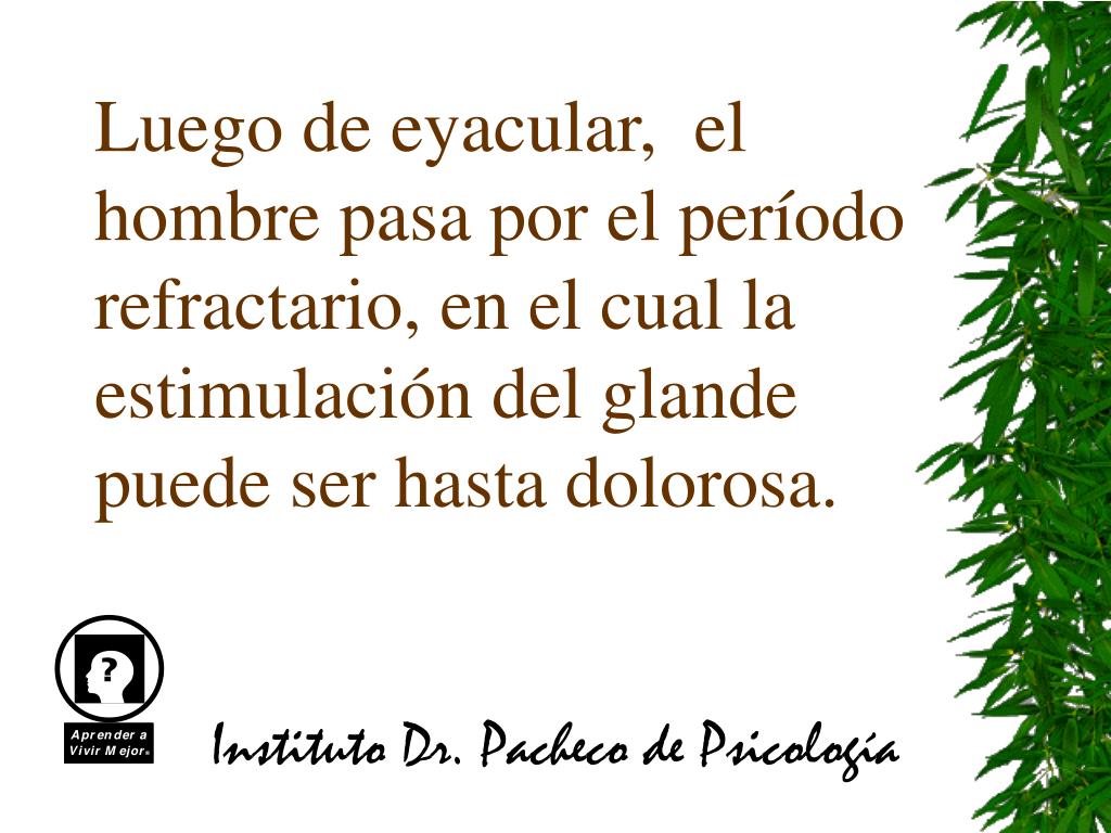 Luego de eyacular, el hombre pasa por el período refractario, en el cual la estimulación del glande puede ser hasta dolorosa. Instituto Dr. Pacheco de Psicología