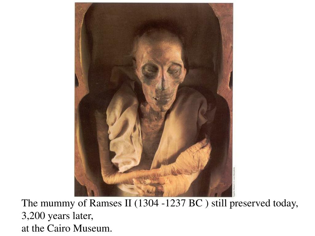 The mummy of Ramses II (1304 -1237 BC ) still preserved today, 3,200 years later, at the Cairo Museum.