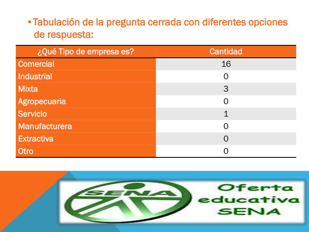 Tabulación de la pregunta cerrada con diferentes opciones • de respuesta: