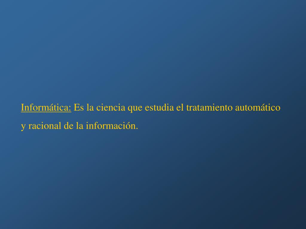 Informática: Es la ciencia que estudia el tratamiento automático y racional de la información.