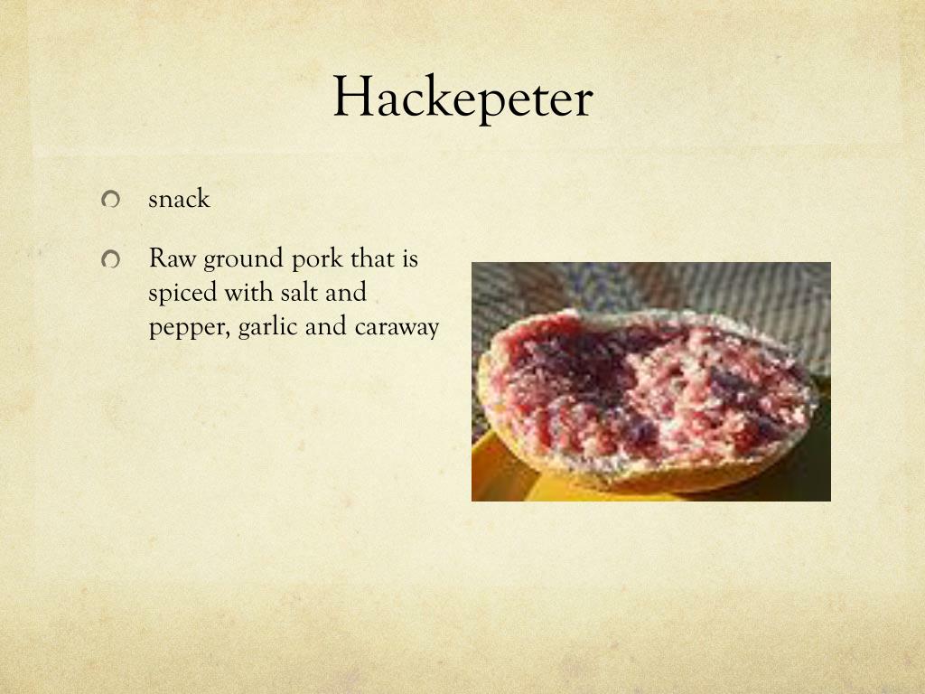 Hackepeter • snack • Raw ground pork that is spiced with salt and pepper, garlic and caraway