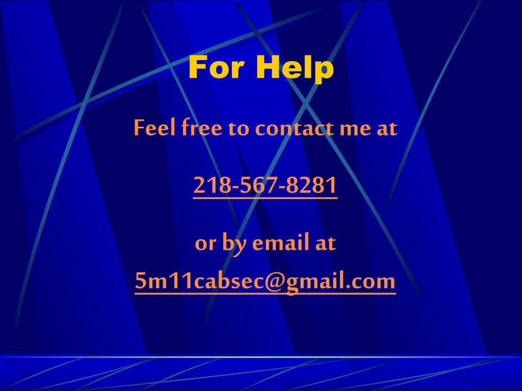 For Help Feel free to contact me at 218-567-8281 or by email at 5m11cabsec@gmail.com