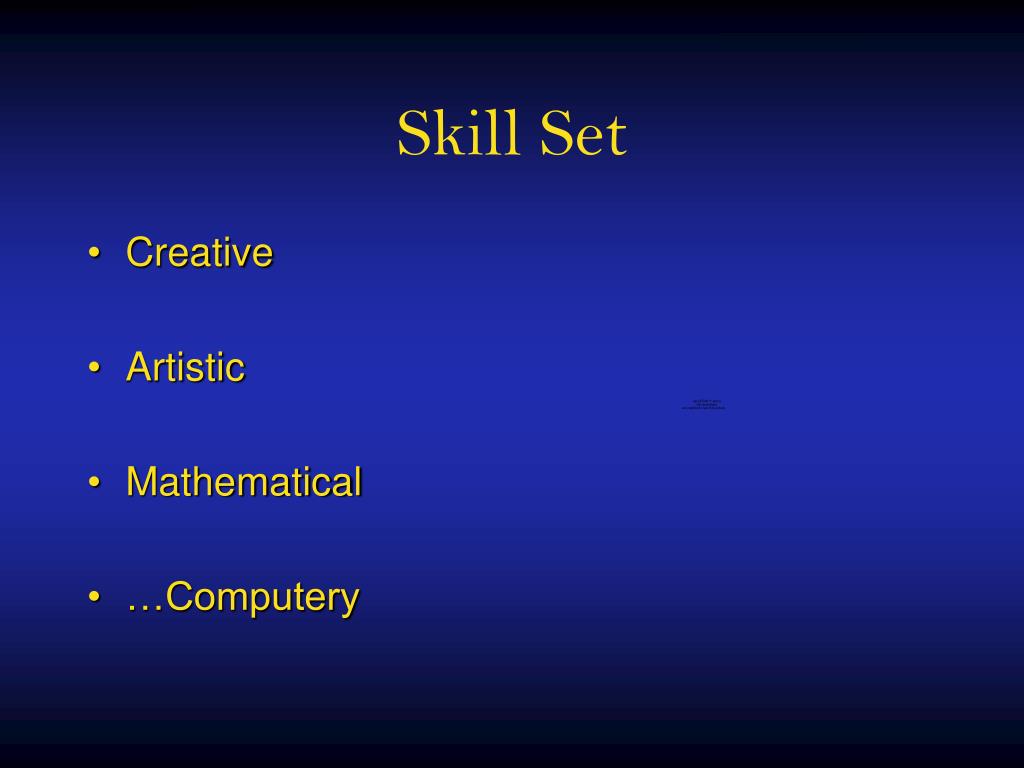 Skill Set • Creative • Artistic • Mathematical • …Computery