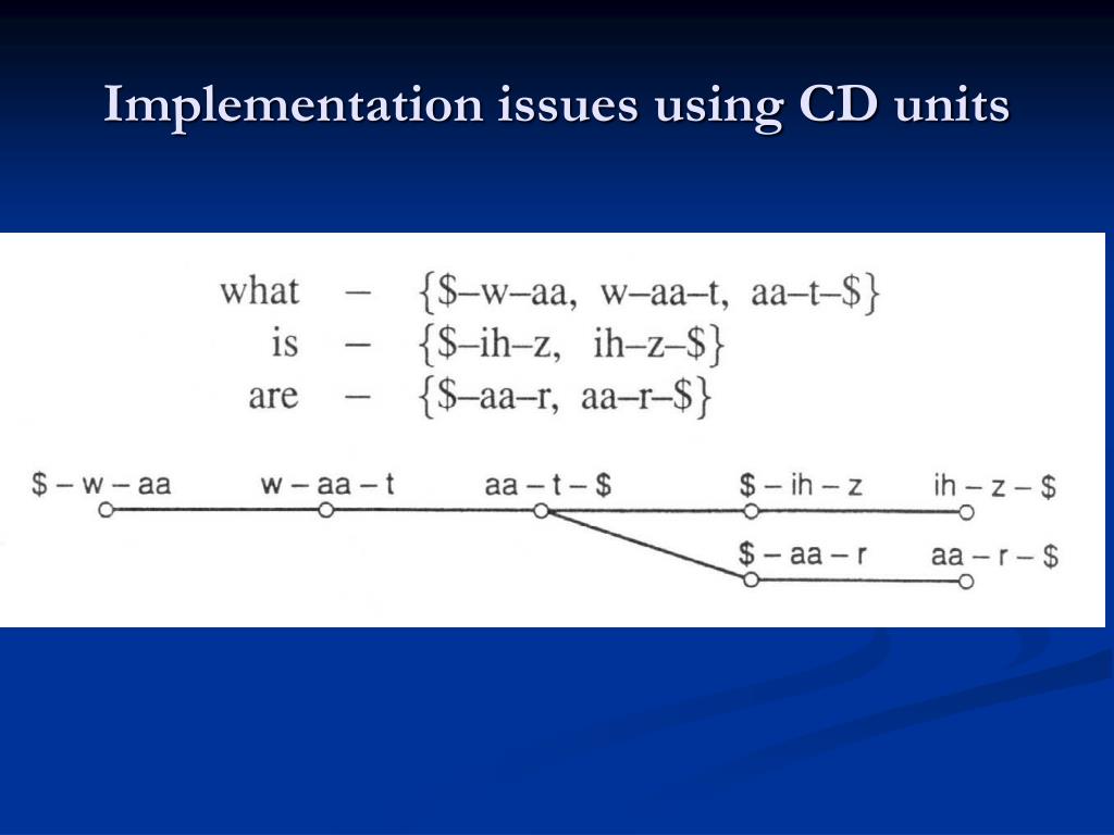 Word junction effects To handle known phonological changes, a set of phonological rules are Superimposed on both the training and recognition networks. Some typical phonological rules include: