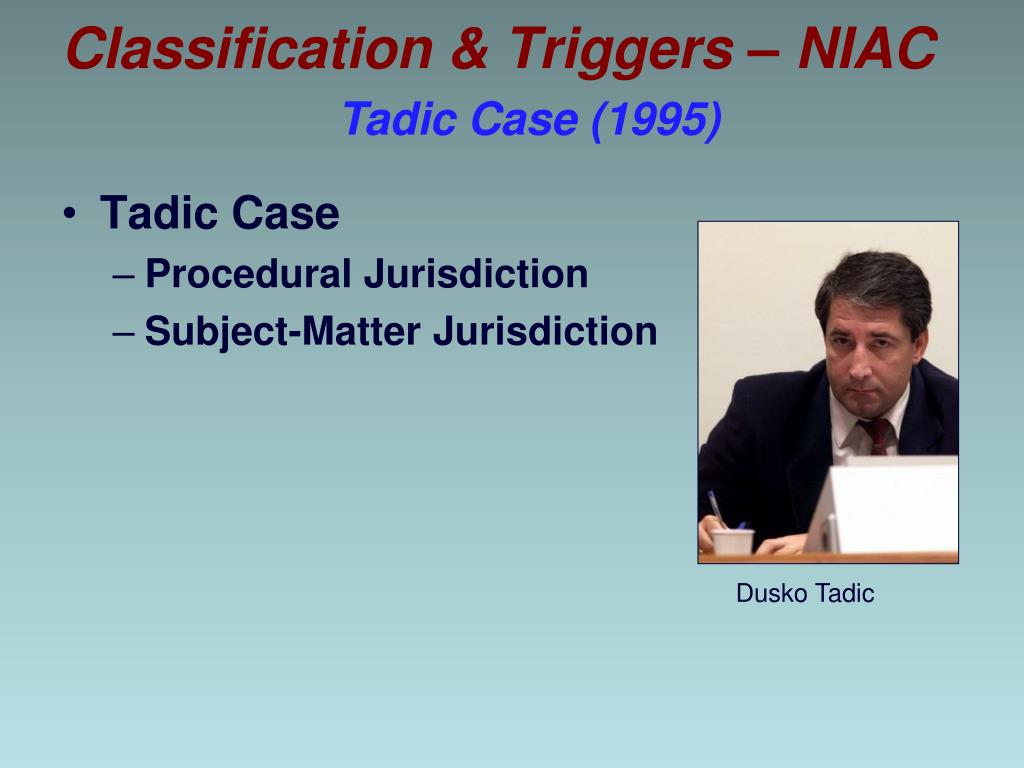 Classification & Triggers – NIAC Tadic Case (1995) • Tadic Case • Procedural Jurisdiction • Subject-Matter Jurisdiction Dusko Tadic