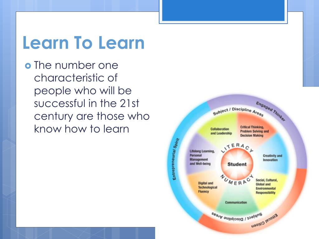 Learn To Learn • The number one characteristic of people who will be successful in the 21st century are those who know how to learn