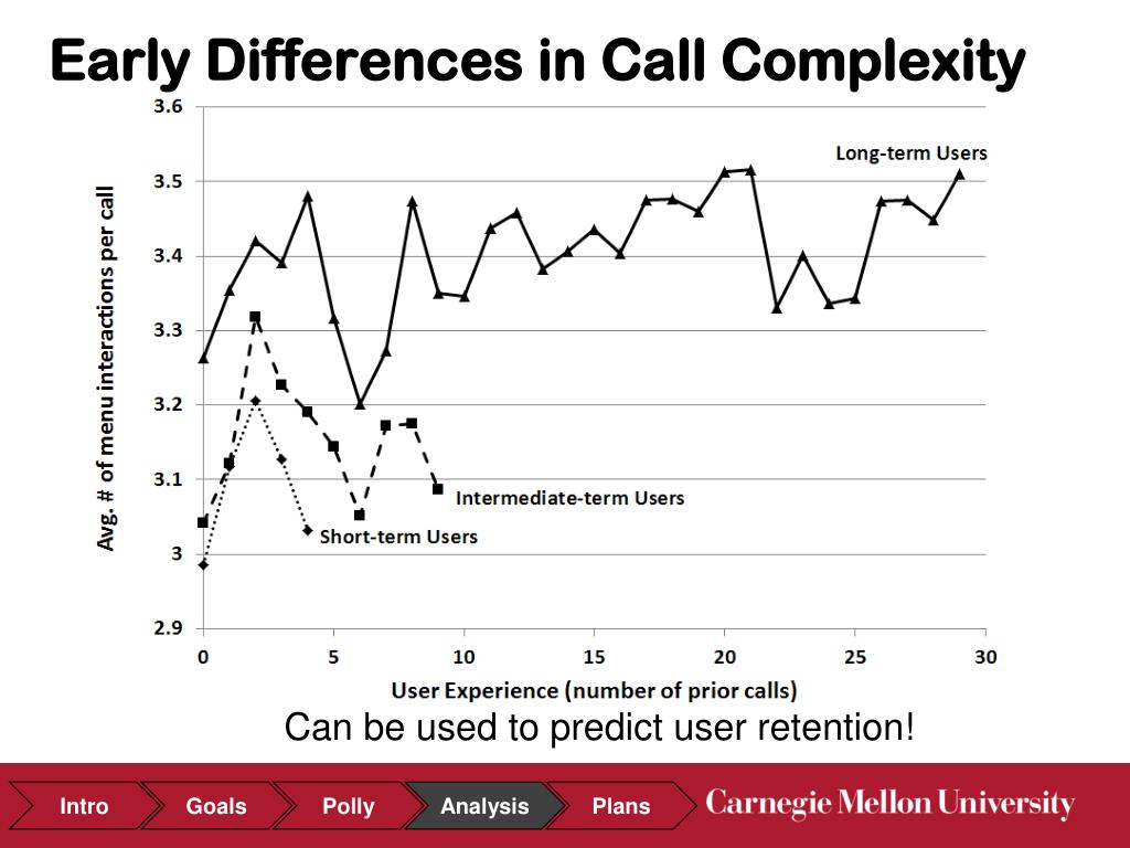 Early Differences in Call Complexity Can be used to predict user retention! Intro Goals Polly Analysis Plans