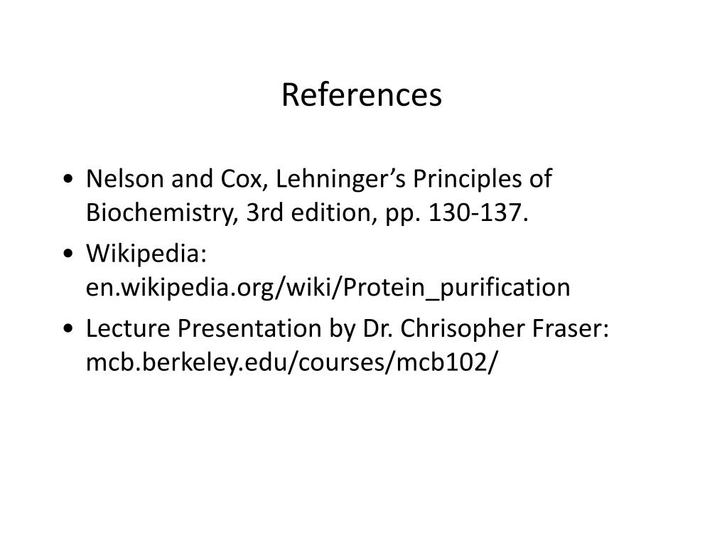 Molecular Cell Biology. Purifying Proteins Cooper. References. Nelson and Cox, Lehninger’s Principles of Biochemistry, 3rd edition, pp. 130-137. Wikipedia: en.wikipedia.org/wiki/Protein_purification Lecture Presentation by Dr. Chrisopher Fraser: mcb.berkeley.edu/courses/mcb102/.