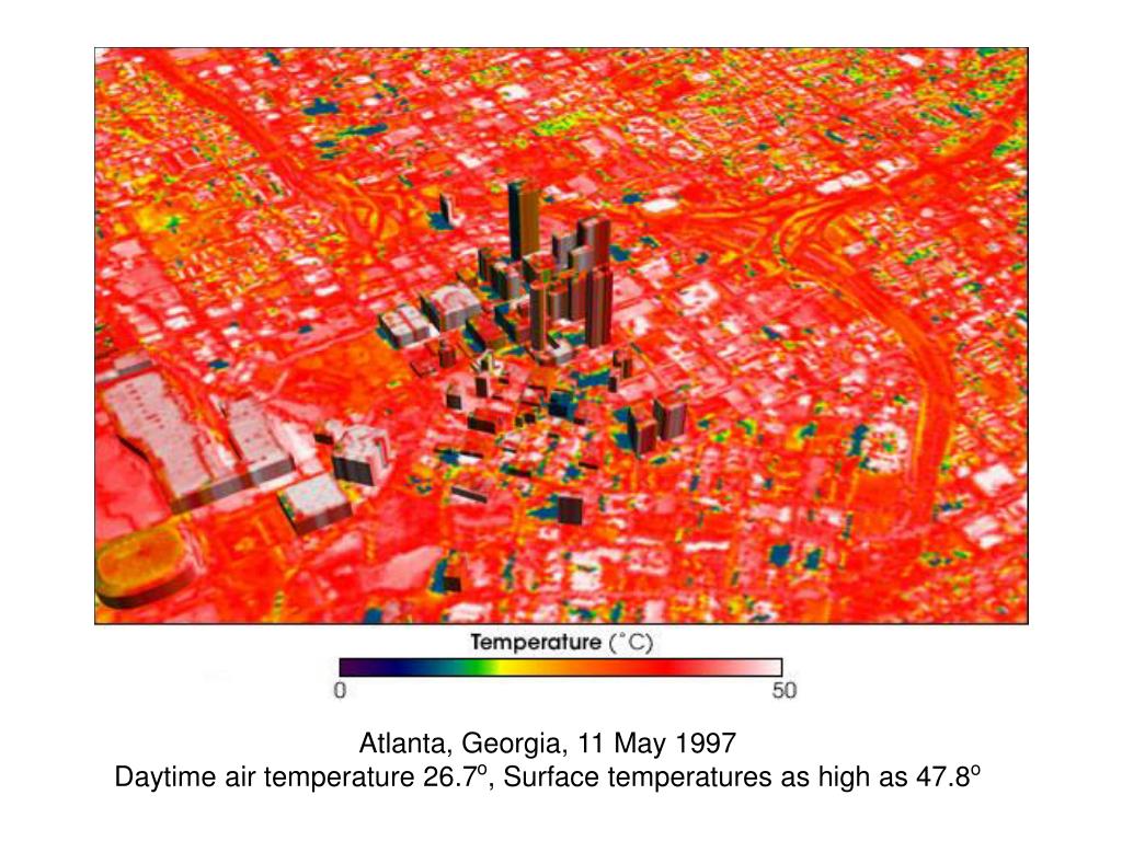 Atlanta, Georgia, 11 May 1997 Daytime air temperature 26.7o, Surface temperatures as high as 47.8o