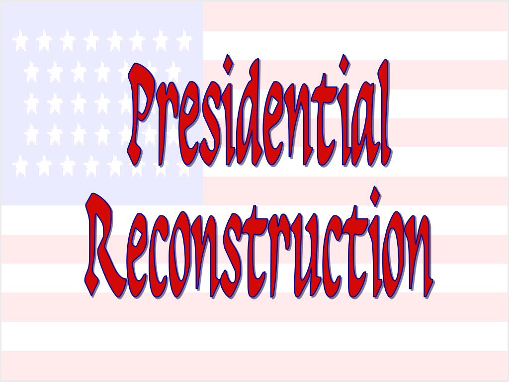 President Andrew Johnson • Jacksonian Democrat • Support for the “common man” • Anti-Aristocrat • White Supremacist • Was not concerned with African American suffrage (right to vote) • Agreed with Lincolnthat states had neverlegally left the Union.