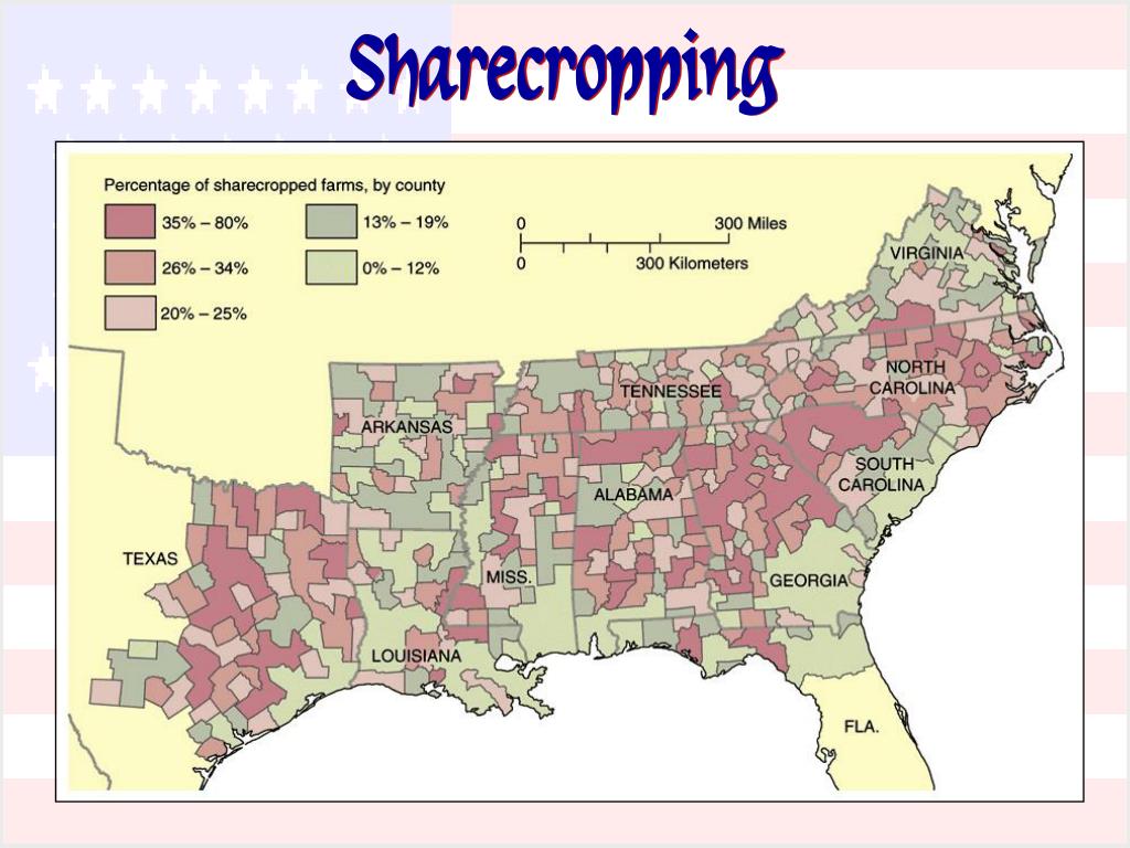 Black Codes • Purpose: • Guarantee stable labor supply now that blacks were emancipated. • Restore pre-emancipationsystem of race relations. • Forced many blacks to become sharecroppers[tenant farmers].