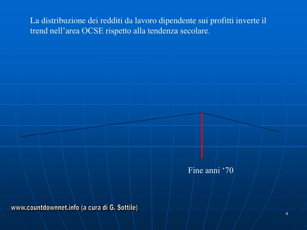 La distribuzione dei redditi da lavoro dipendente sui profitti inverte il trend nell’area OCSE rispetto alla tendenza secolare. Fine anni ‘70 www.countdownnet.info (a cura di G. Sottile)