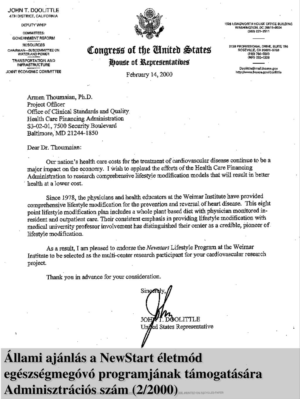 Állami ajánlás a NewStart életmód egészségmegóvó programjának támogatására Adminisztrációs szám (2/2000)