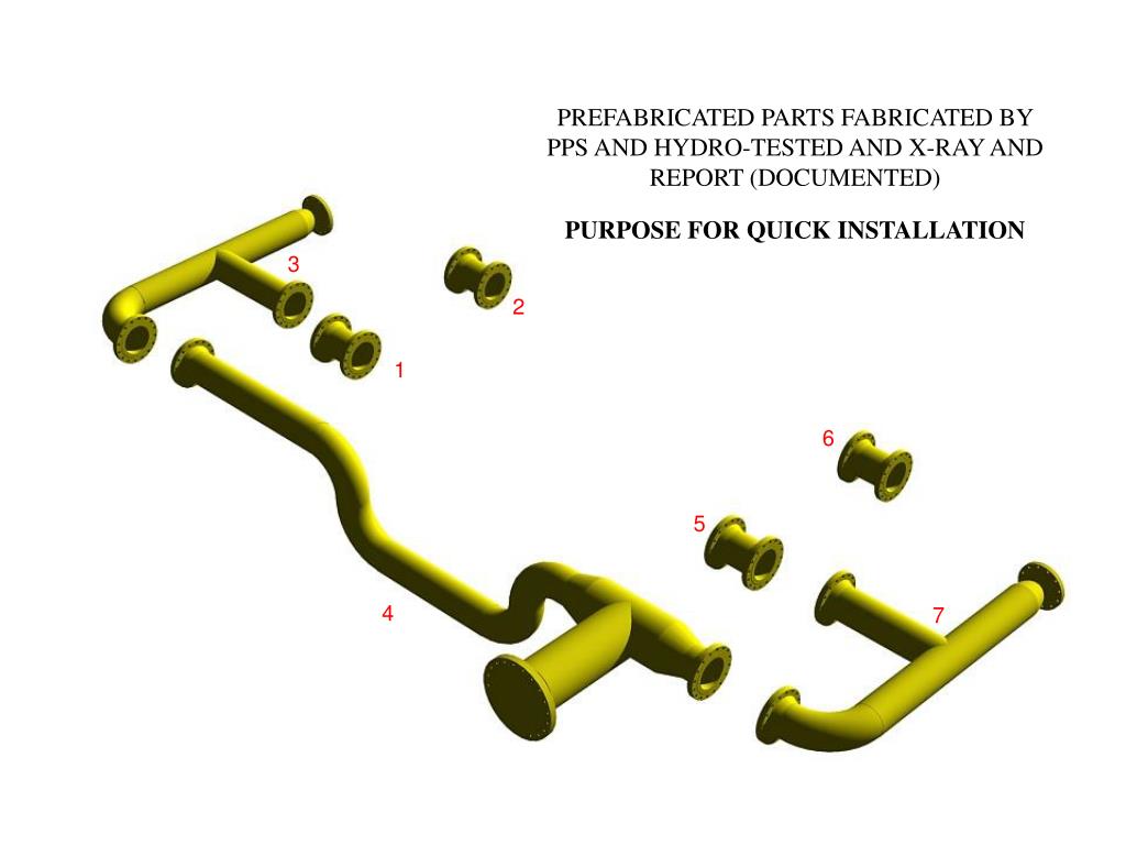 PREFABRICATED PARTS FABRICATED BY PPS AND HYDRO-TESTED AND X-RAY AND REPORT (DOCUMENTED) PURPOSE FOR QUICK INSTALLATION 3 2 1 6 5 4 7