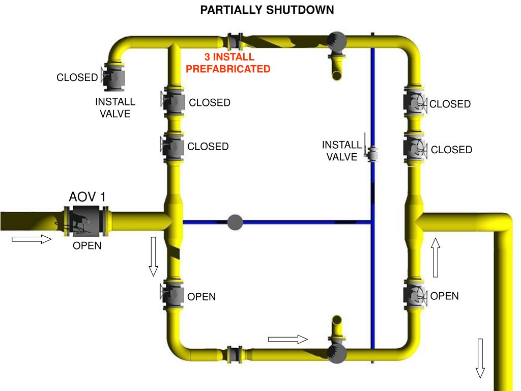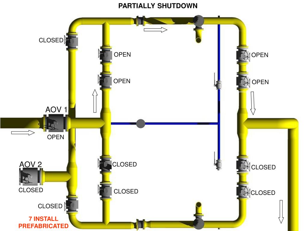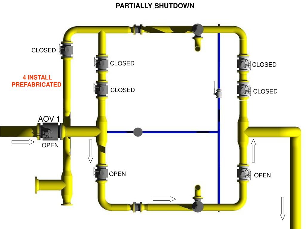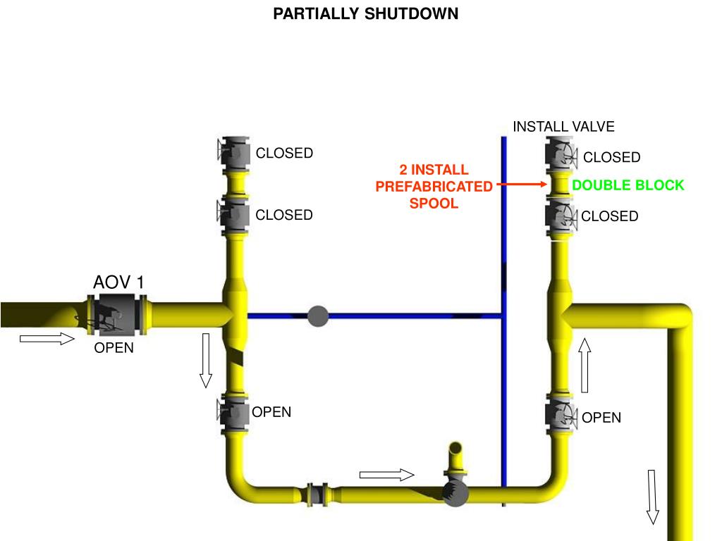 PARTIALLYSHUTDOWN INSTALL VALVE CLOSED CLOSED 2 INSTALL PREFABRICATED SPOOL DOUBLE BLOCK CLOSED CLOSED AOV 1 OPEN OPEN OPEN