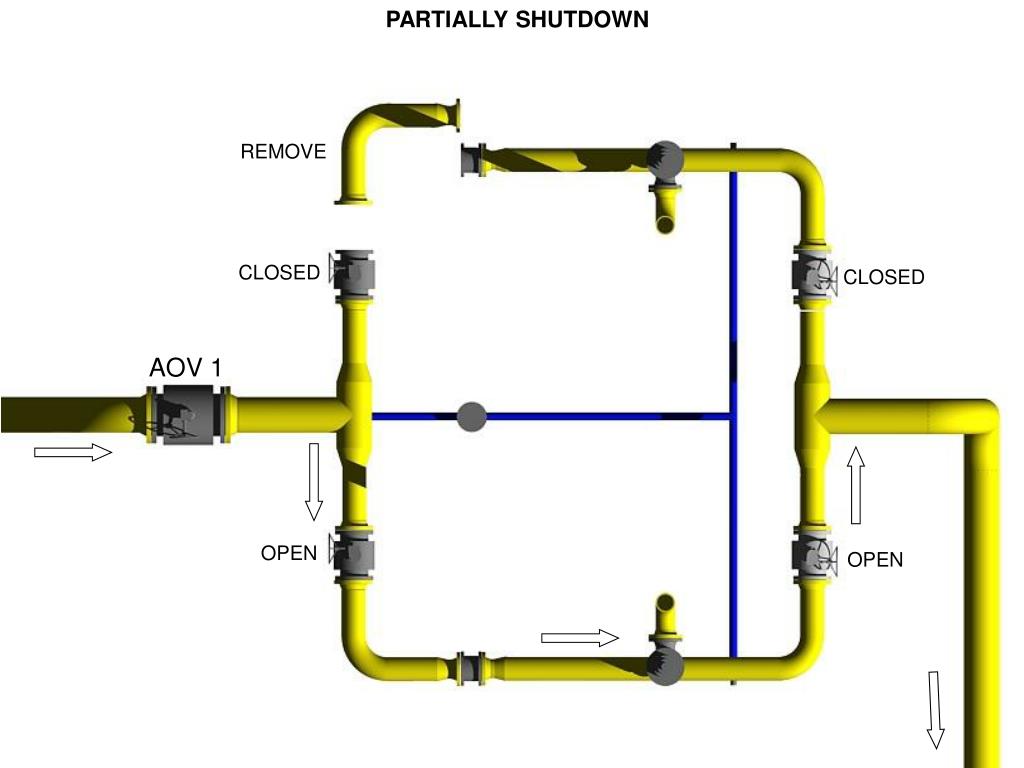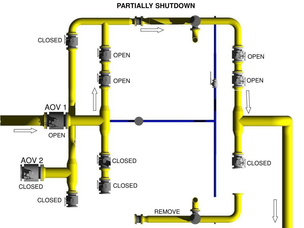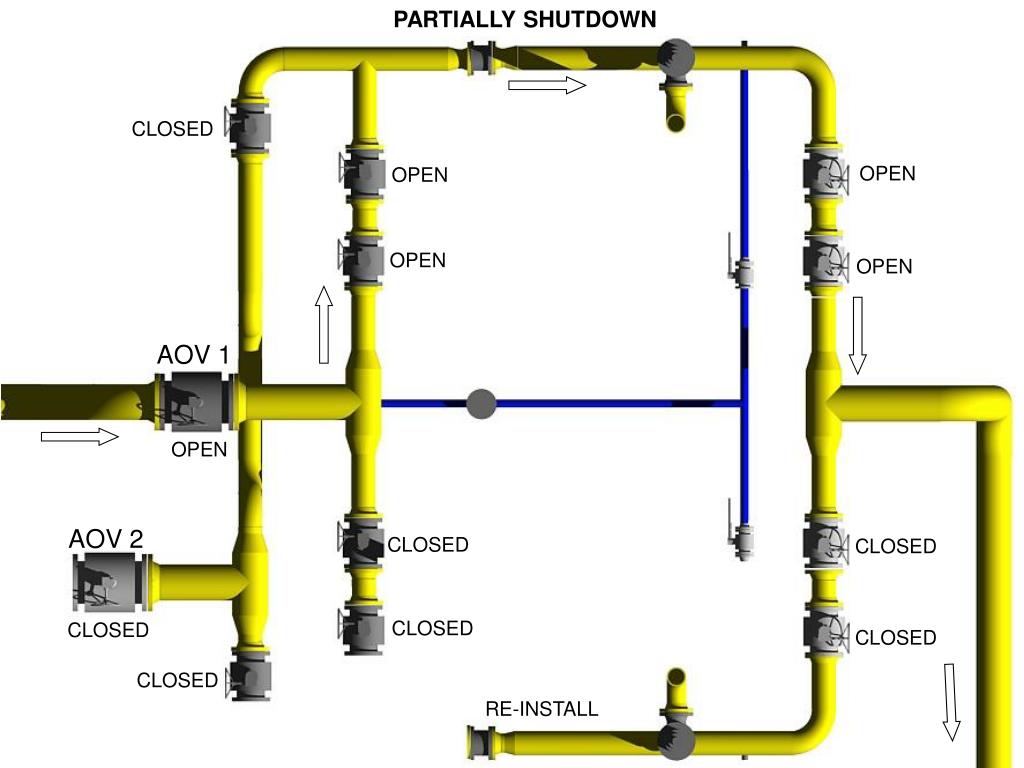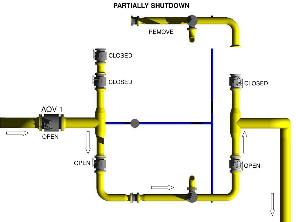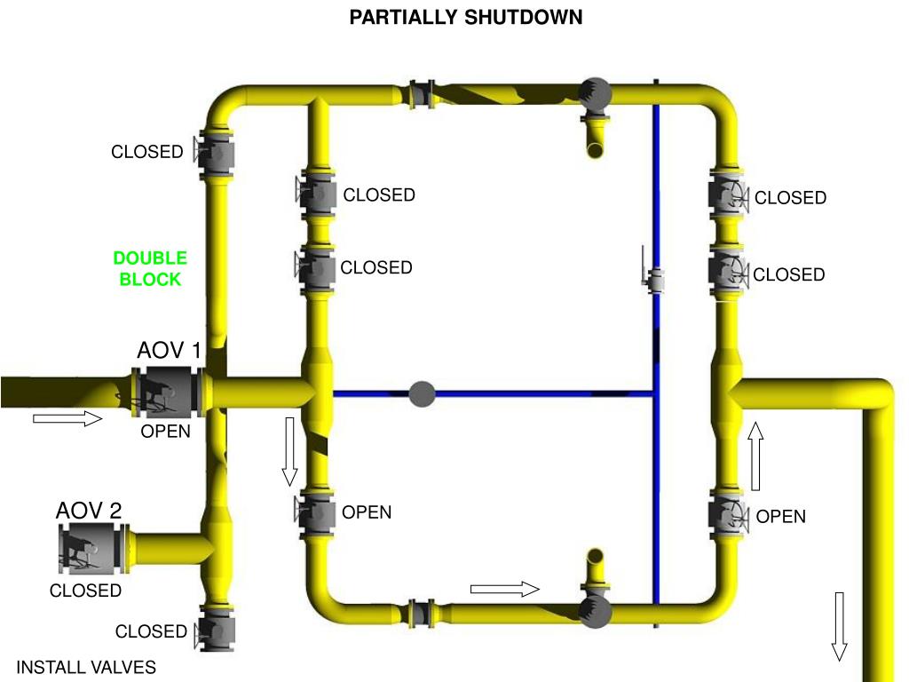 PARTIALLYSHUTDOWN INSTALL VALVE CLOSED CLOSED 2 INSTALL PREFABRICATED SPOOL DOUBLE BLOCK CLOSED CLOSED AOV 1 OPEN OPEN OPEN