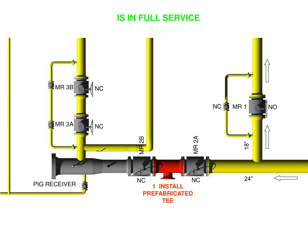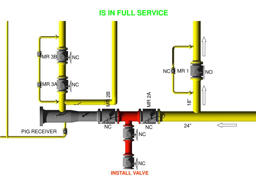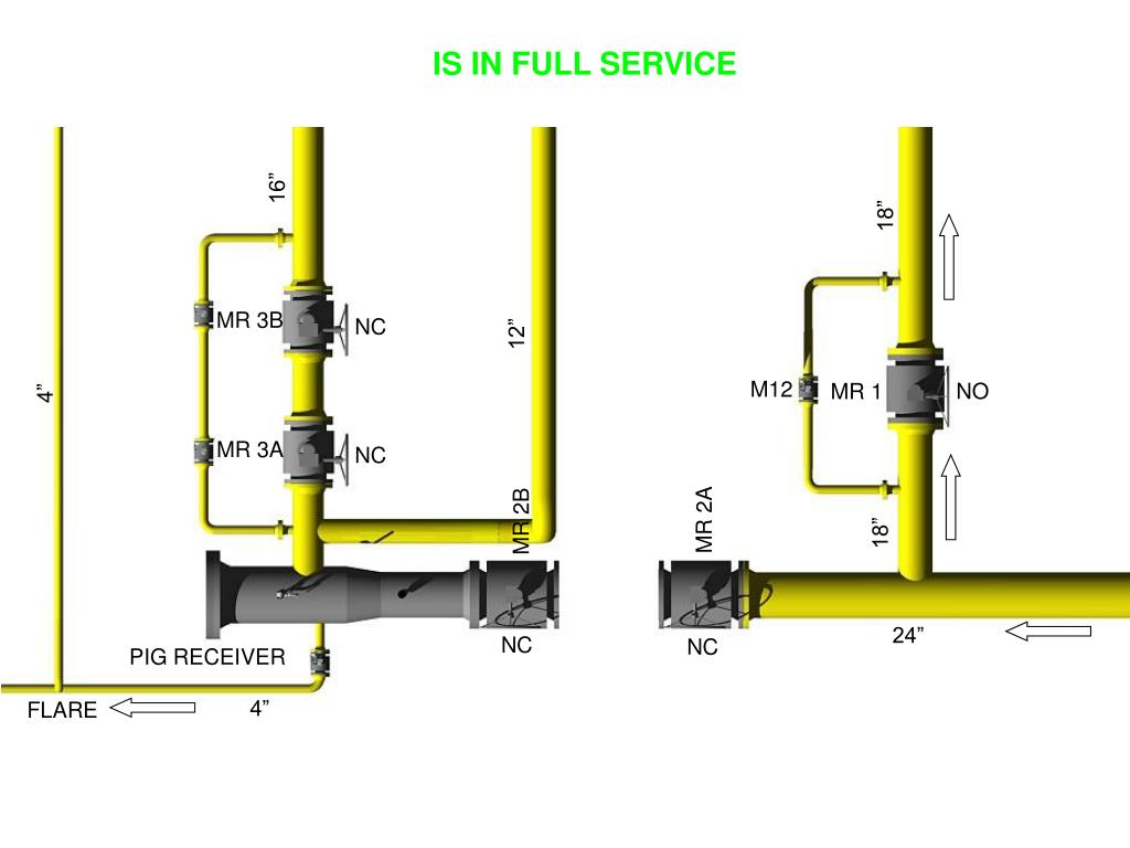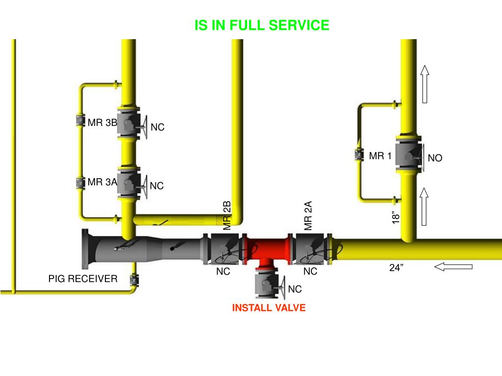 IS IN FULL SERVICE MR 3B NC MR 1 NC NO MR 3A NC MR 2B MR 2A 18” 24” NC NC PIG RECEIVER NC NC INSTALL VALVE