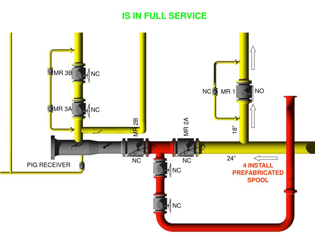 IS IN FULL SERVICE MR 3B NC NO NC MR 1 MR 3A NC MR 2A MR 2B 18” 24” NC NC PIG RECEIVER 4 INSTALL PREFABRICATED SPOOL NC NC