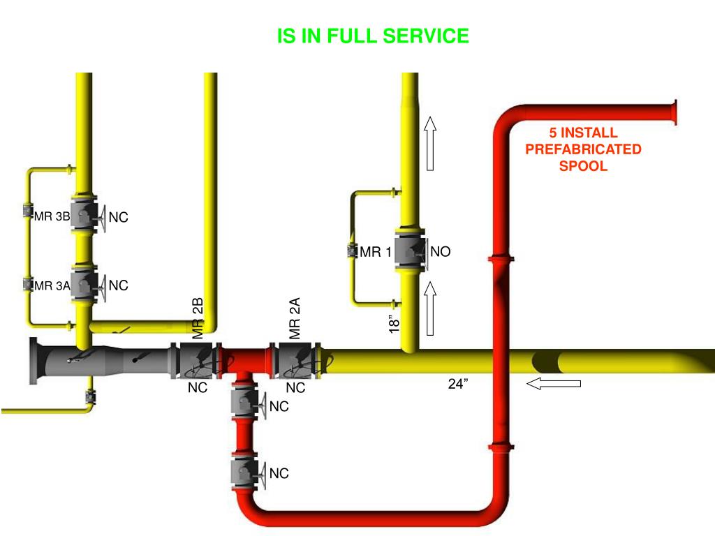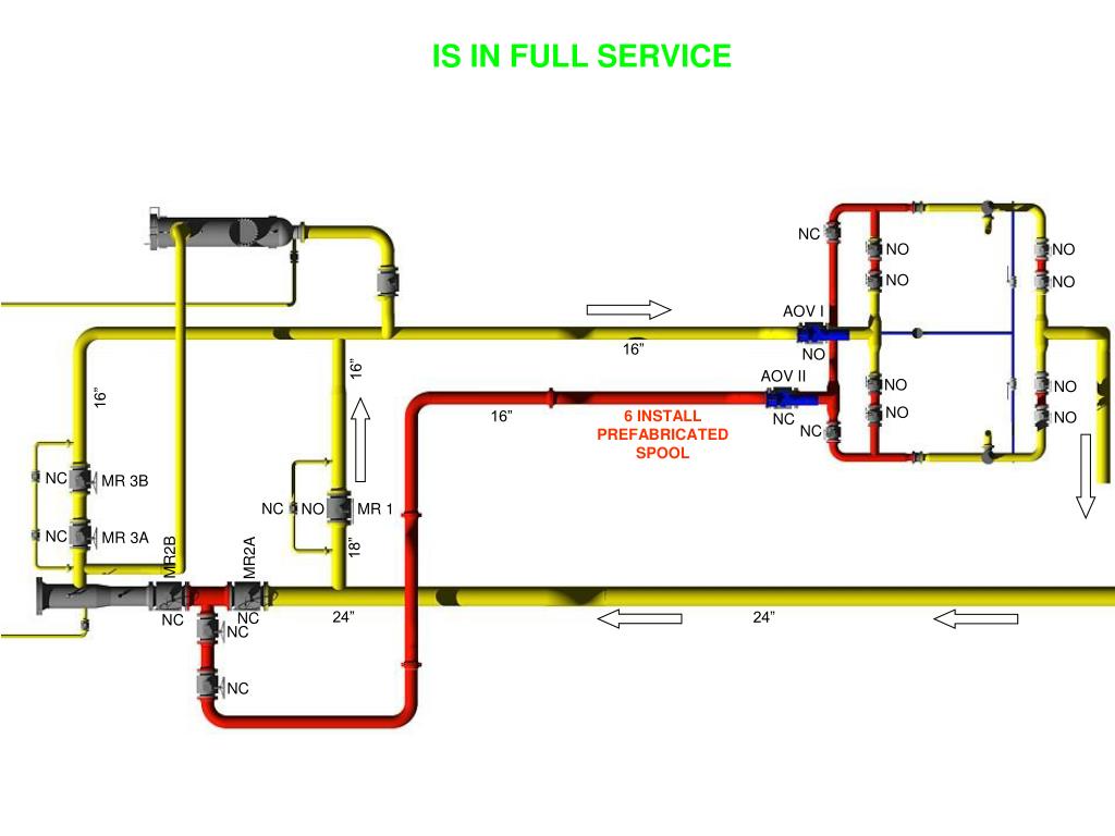 IS IN FULL SERVICE NC NO NO NO NO AOV I 16” NO 16” AOV II NO NO 16” NO 6 INSTALL PREFABRICATED SPOOL 16” NO NC NC NC MR 3B NC NO MR 1 NC MR 3A 18” MR2B MR2A 24” 24” NC NC NC NC