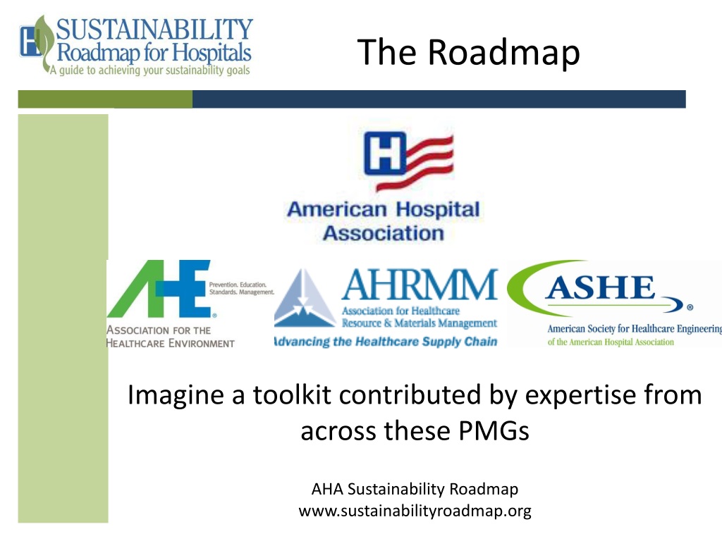 The Roadmap Imagine a toolkit contributed by expertise from across these PMGs AHA Sustainability Roadmapwww.sustainabilityroadmap.org