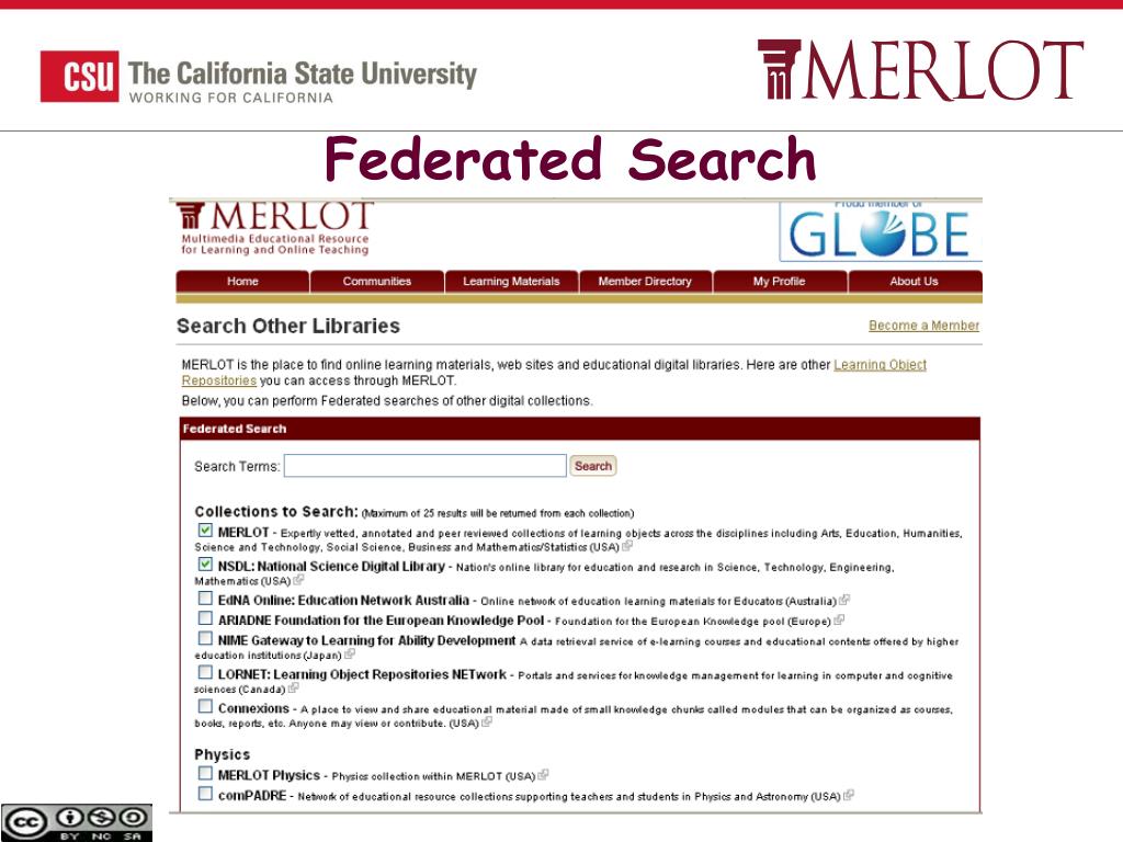 MERLOT Advanced Search - Advanced Search web service available to Partners, and for a fee - Contribute web service and Join web service in Beta