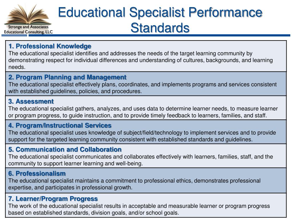 Key Features • Uniform evaluation system for teachers, educational specialists, & principals • Camera-ready handbooks and training materials • Simplified set of research-based performance standards • Extensively field tested • Aligned with InTASC and ISLLC standards • Professional growth and accountability oriented • Multiple data sources • Includes measures of student progress • Provides diagnostic profile of evaluatee • Fully customizable to district and state requirements
