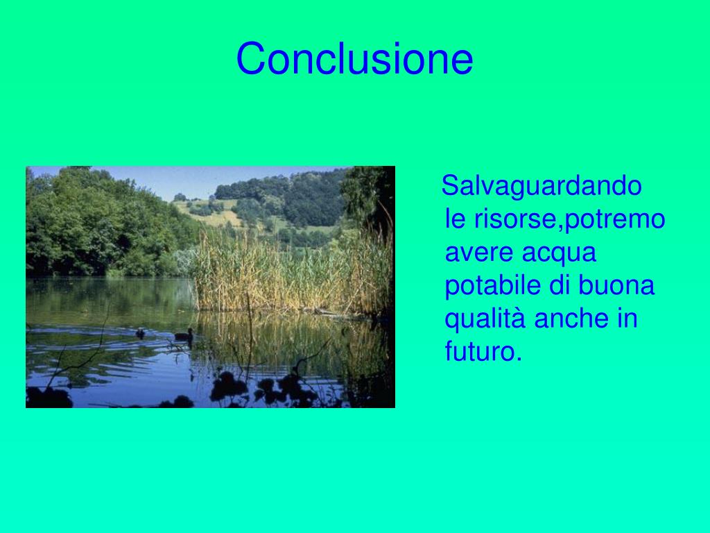 Conclusione Salvaguardando le risorse,potremo avere acqua potabile di buona qualità anche in futuro.