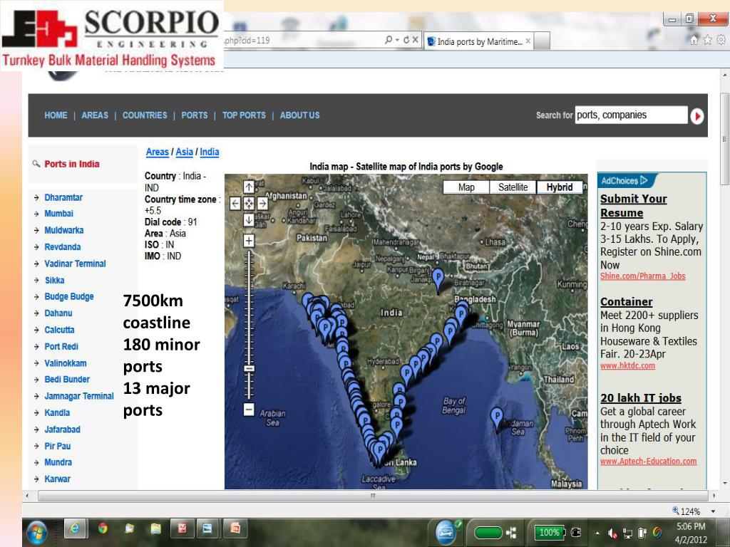 OPPORTUNITIES IN DRY BULK LOGISTICS IN INDIA B. Velan Managing Director Scorpio Engineering Pvt Ltd India