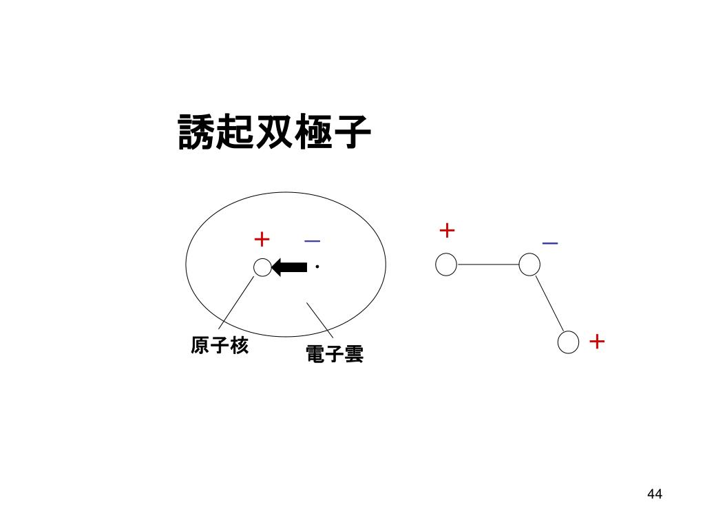 誘起双極子 + + ― ・ 原子核 正電荷 電子雲 P12図1-15