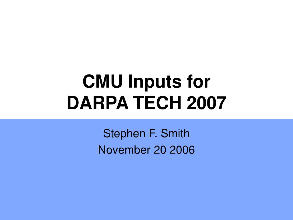 CMU Inputs for DARPA TECH 2007 Stephen F. Smith November 20 2006