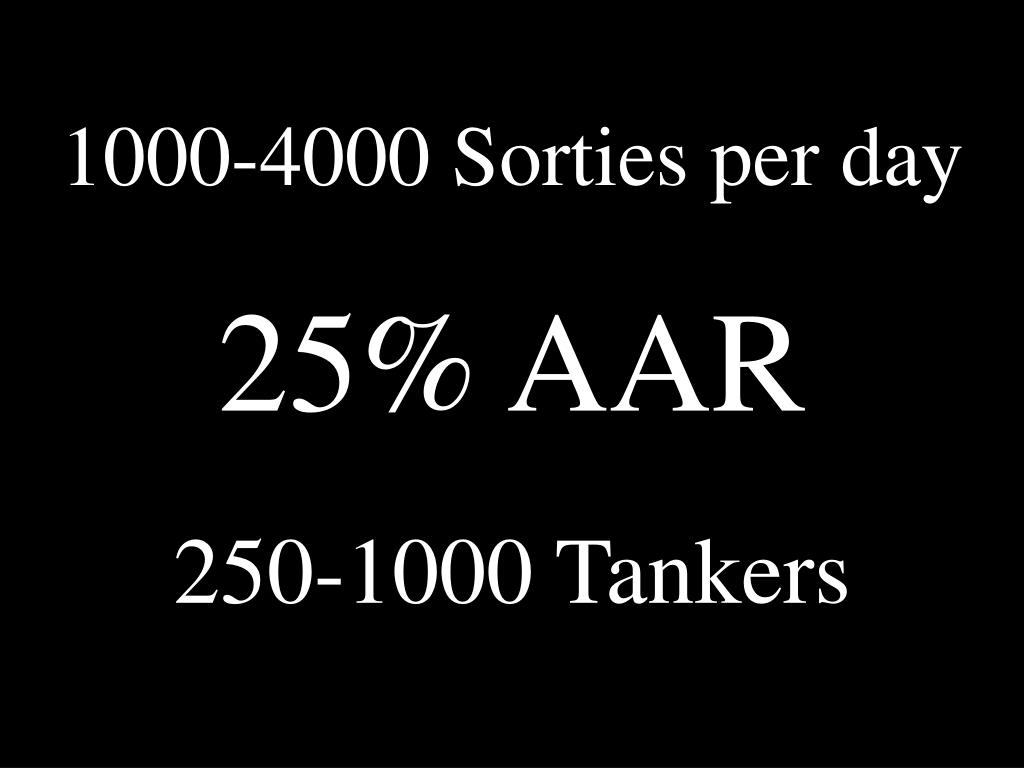 1000-4000 Sorties per day 25% AAR 250-1000 Tankers