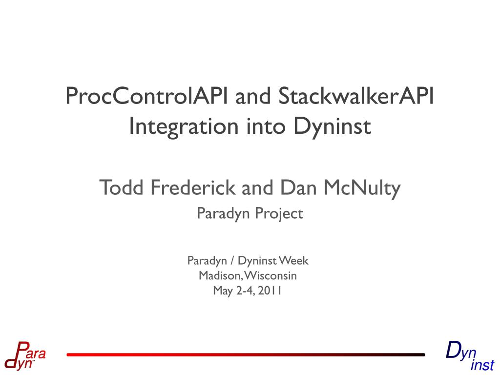 ProcControlAPI and StackwalkerAPIIntegration into Dyninst Todd Frederick and Dan McNulty