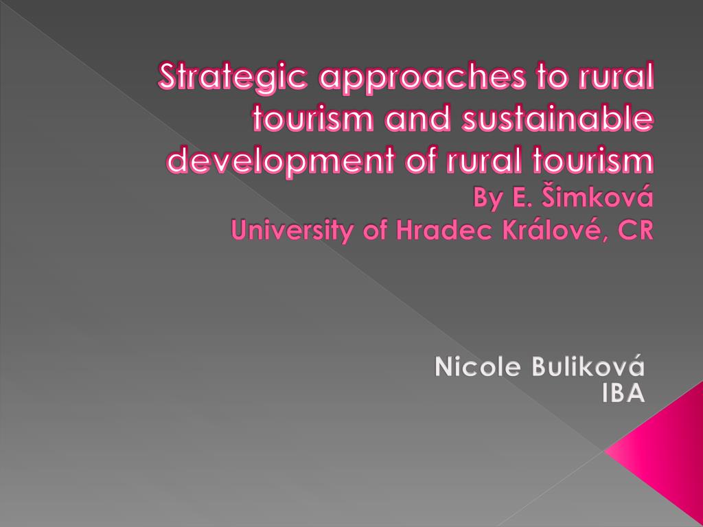 Strategic approaches to rural tourism and sustainable development of rural tourismBy E. ŠimkováUniversity of Hradec Králové, CR Nicole Buliková IBA
