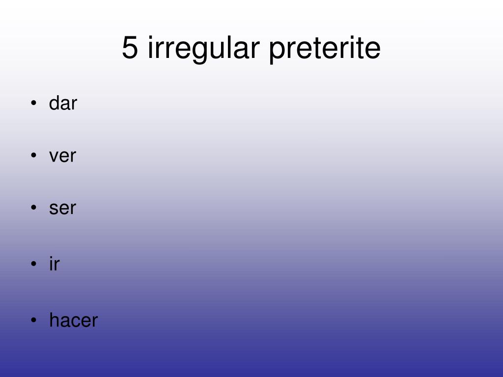 5 irregular preterite • dar • ver • ser • ir • hacer