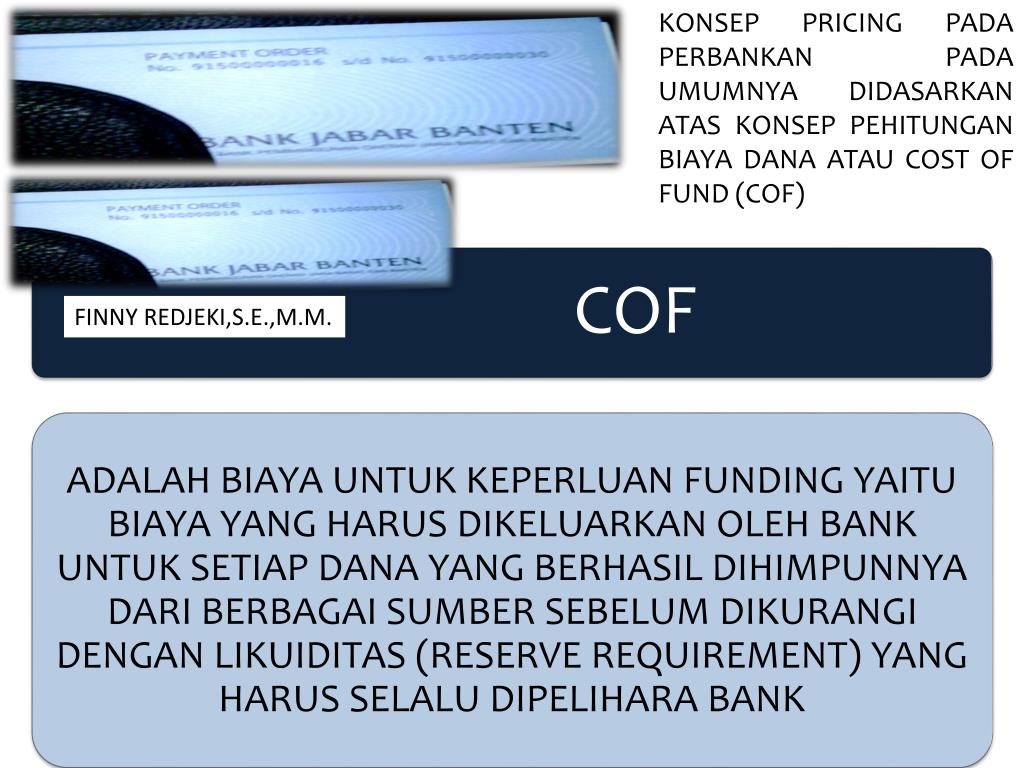 KONSEP PRICING PADA PERBANKAN PADA UMUMNYA DIDASARKAN ATAS KONSEP PEHITUNGAN BIAYA DANA ATAU COST OF FUND (COF) FINNY REDJEKI,S.E.,M.M.