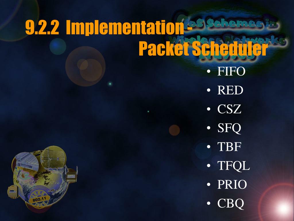 9.2.2 Implementation - Packet Scheduler • FIFO • RED • CSZ • SFQ • TBF • TFQL • PRIO • CBQ