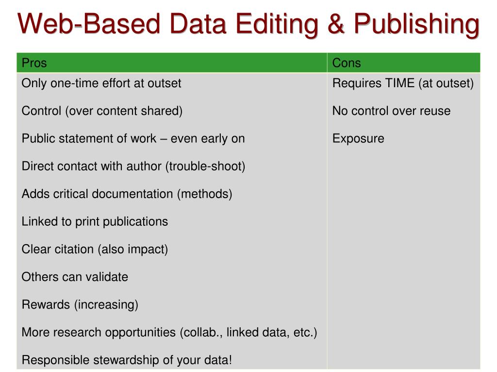 “Data sharing as publishing” model … but need concrete examples of reuse! - NEH projects - EOL project