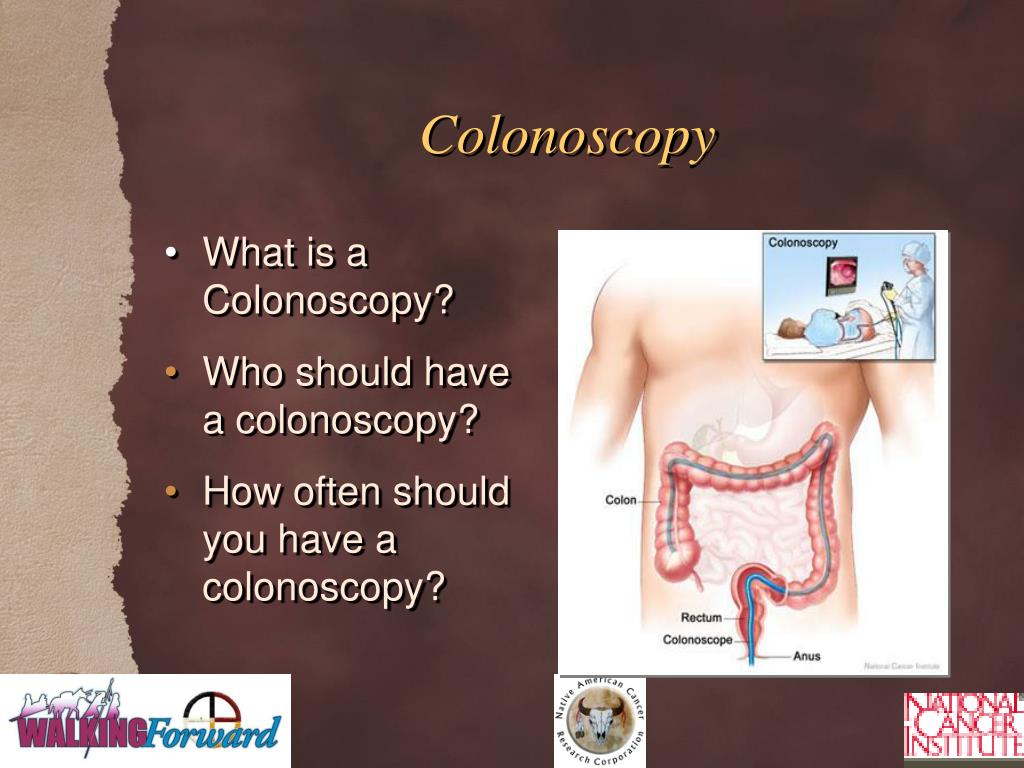Colonoscopy What is a Colonoscopy? Who should have a colonoscopy? How often should you have a colonoscopy?