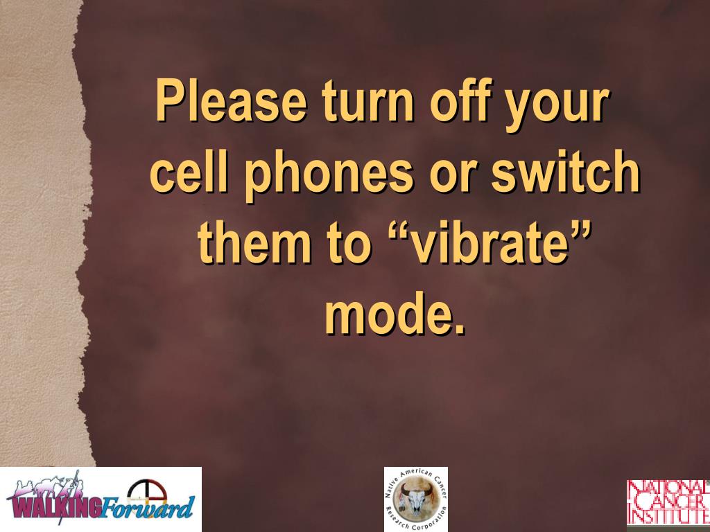 Please turn off your cell phones or switch them to “vibrate” mode.